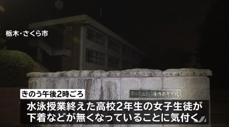 18日、栃木県さくら市の高校で、水泳の授業中に女子更衣室から生徒の下着など39点が盗まれました。