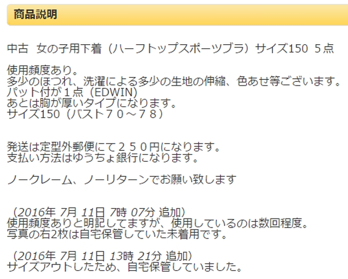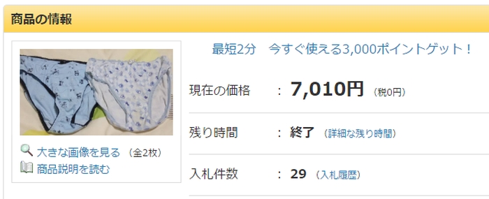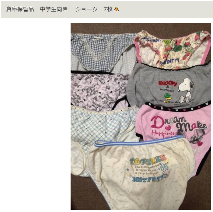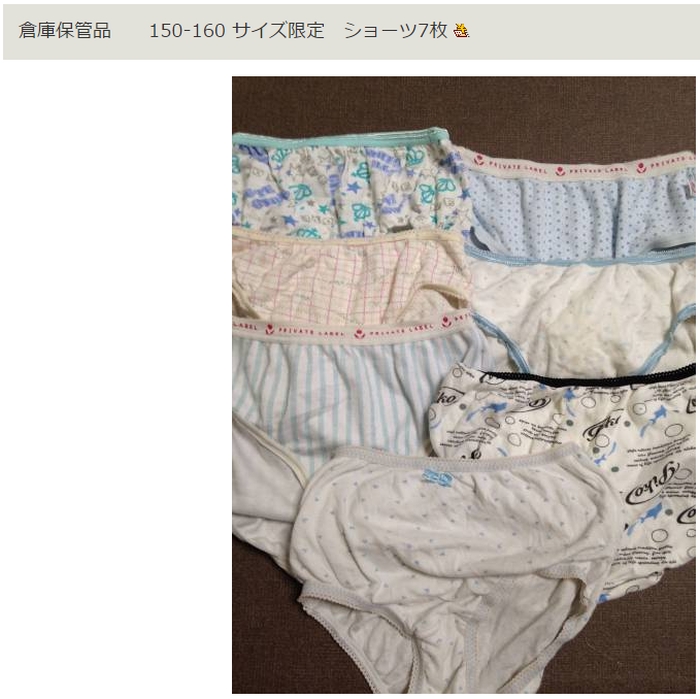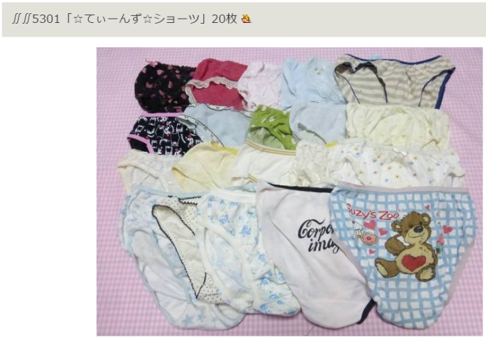 今回は、某オークションで簡単に手に入れられる女子小中学生の使用済み下着を
