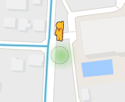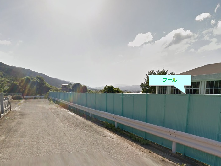 地図上にヒットした中学校を拡大すると、プールの位置が水色の四角になっています。