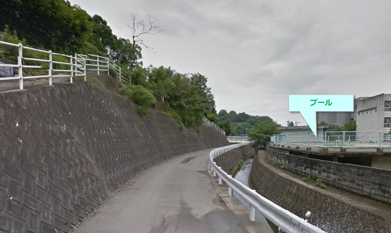 町はずれの学校は、山林に面したところにプールがあることも多いです。