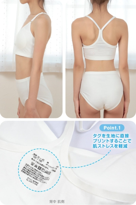 ずれにくさを重視し、ハーフトップ(胸の下までの長さのタンクトップ)のような形状である。肩ひもは太く、後ろで交差する形状になっているものが多い。アンダーバスト部は伸縮性の高い生地である。ワイヤーやホックは擦れて肌を傷めるおそれから、使用しないものがある。ホックの無いものの着用は、頭からかぶるなどする。