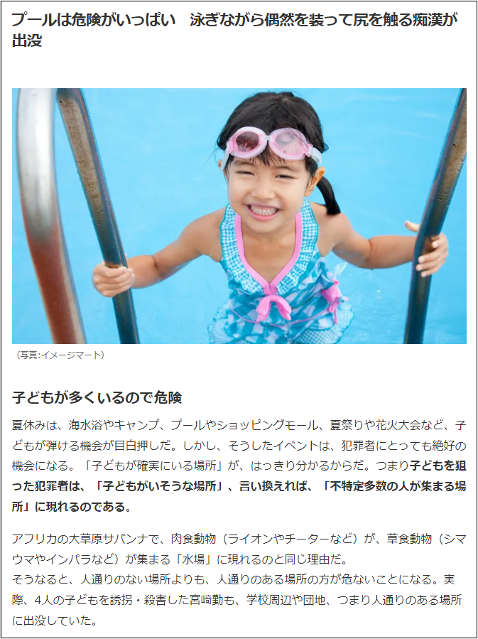 小中学生に接近できるという点から、「プールは危険」ということ。