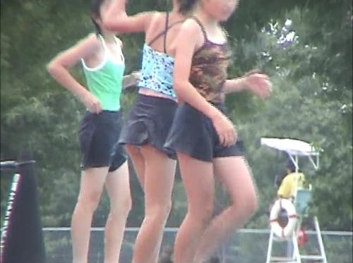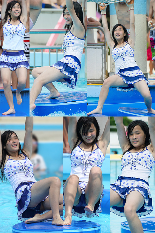 プールサイドでは少女達の下腹部を覆う大事な役割のスカートが、水中では何の役にも立たず大きくめくれ上がり・・・というか常にふわっとして、スクール水着では常に露わな股間なのになぜかスカートがあるだけでここまでエロさが増幅されるとは衝撃的だった。