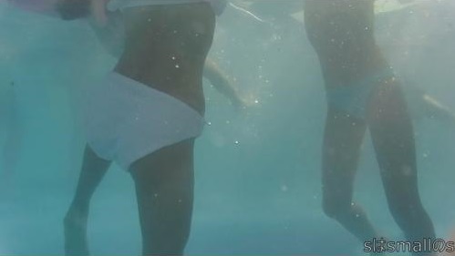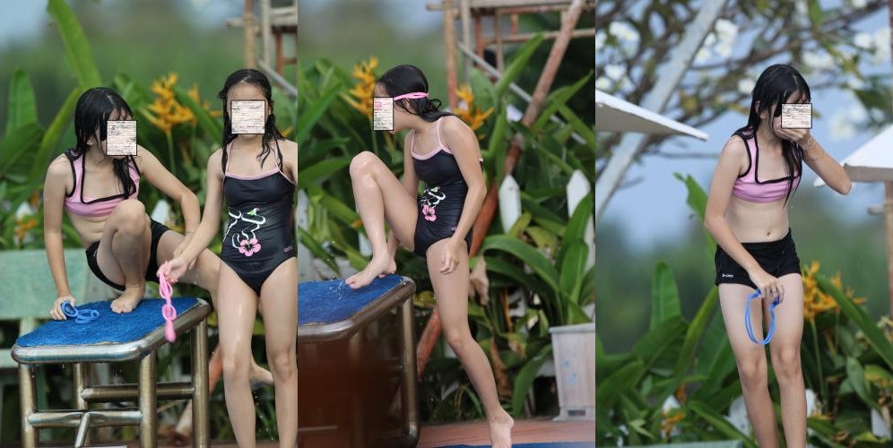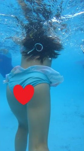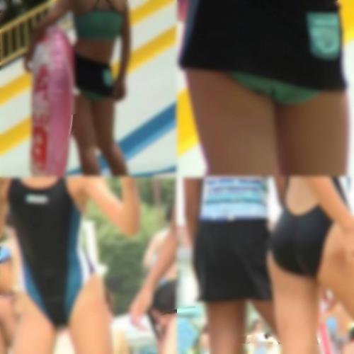 話をレジャープールに戻すと、ゴーグルを付けて水の中に潜った私の目の前には数十センチの距離で水着姿の少女たちの体が。。。右を向いても左を向いても。
